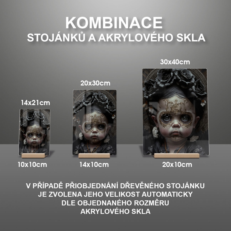 V případě přiobjednání dřevěného stojánku je zvolena jeho velikost automaticky dle objednaného rozměru akrylového skla viz produktové foto.