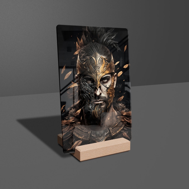 Na produktovém fotu vyobrazena nejoblíbenější varianta akrylového skla 14x21/21x14cm a dřevěný stojánek 10x10cm.