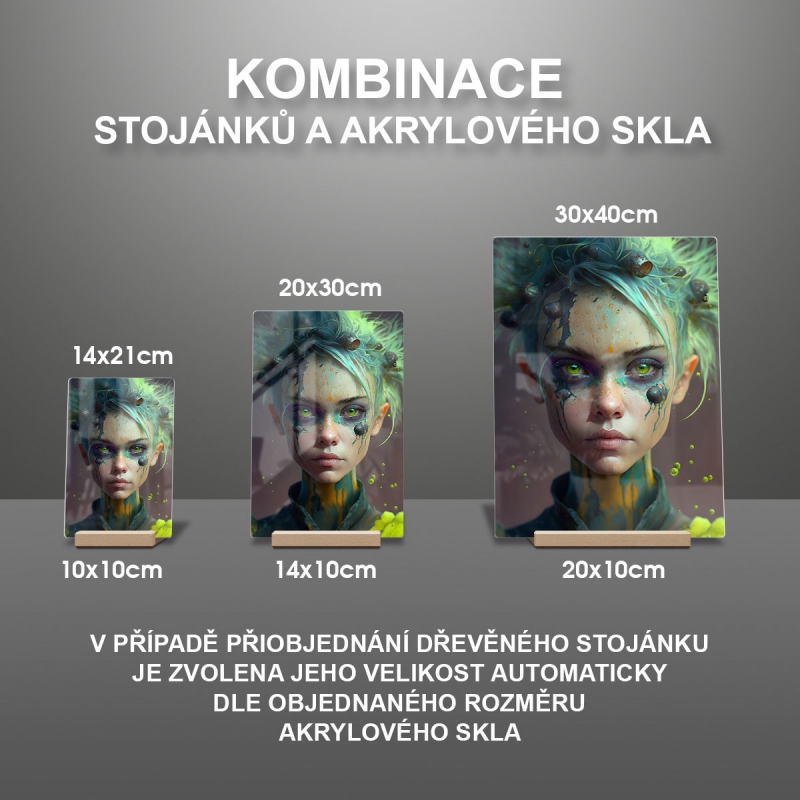V případě přiobjednání dřevěného stojánku je zvolena jeho velikost automaticky dle objednaného rozměru akrylového skla viz produktové foto.