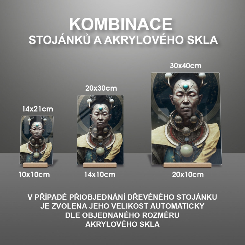 V případě přiobjednání dřevěného stojánku je zvolena jeho velikost automaticky dle objednaného rozměru akrylového skla viz produktové foto.