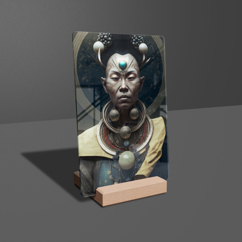 Na produktovém fotu vyobrazena nejoblíbenější varianta akrylového skla 14x21/21x14cm a dřevěný stojánek 10x10cm.