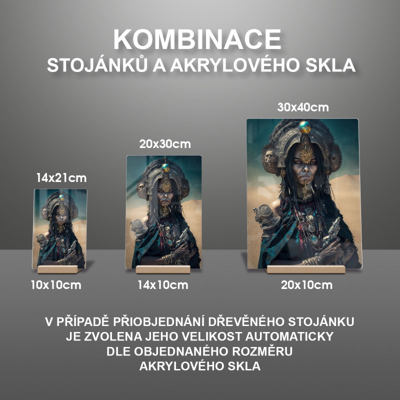 V případě přiobjednání dřevěného stojánku je zvolena jeho velikost automaticky dle objednaného rozměru akrylového skla viz produktové foto.