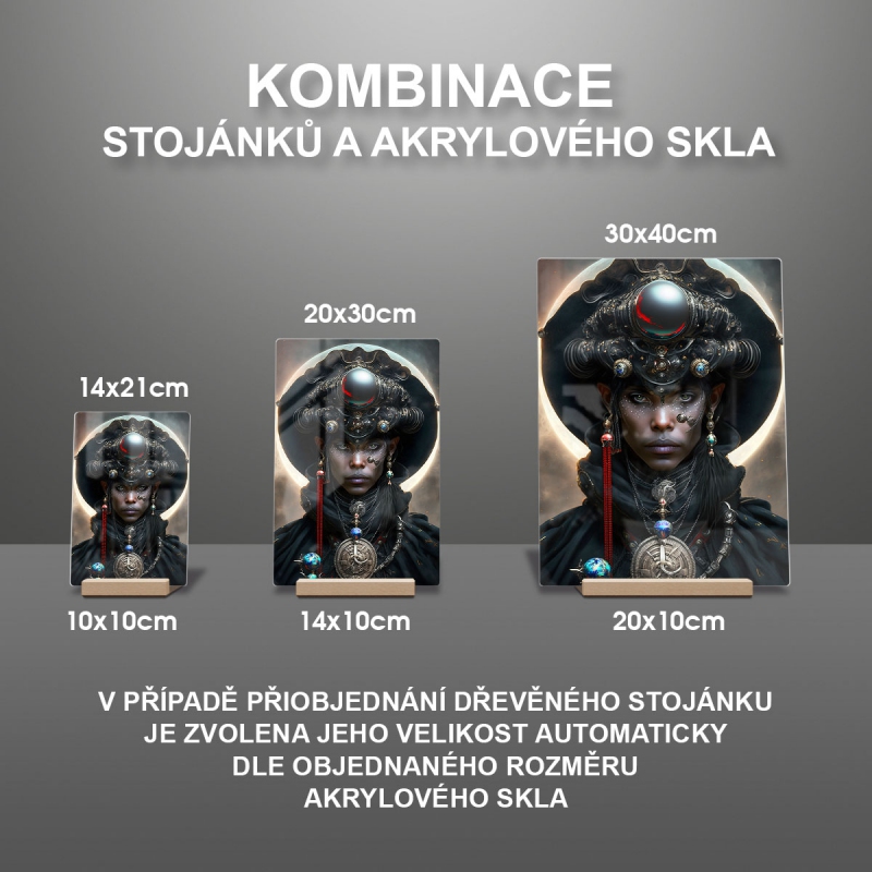 V případě přiobjednání dřevěného stojánku je zvolena jeho velikost automaticky dle objednaného rozměru akrylového skla viz produktové foto.