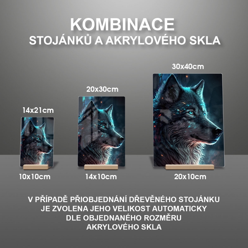 V případě přiobjednání dřevěného stojánku je zvolena jeho velikost automaticky dle objednaného rozměru akrylového skla viz produktové foto.
