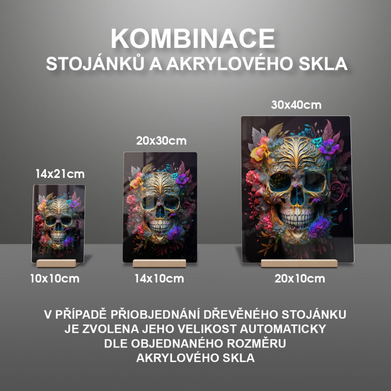 V případě přiobjednání dřevěného stojánku je zvolena jeho velikost automaticky dle objednaného rozměru akrylového skla viz produktové foto.