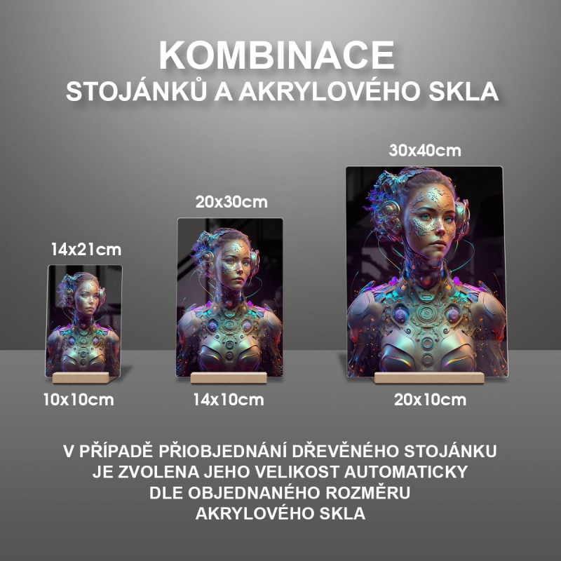 V případě přiobjednání dřevěného stojánku je zvolena jeho velikost automaticky dle objednaného rozměru akrylového skla viz produktové foto.