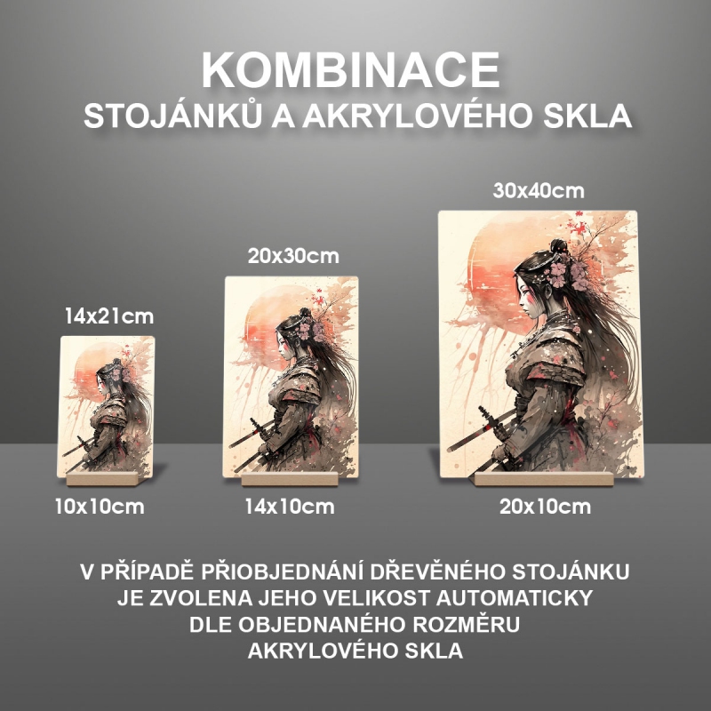 V případě přiobjednání dřevěného stojánku je zvolena jeho velikost automaticky dle objednaného rozměru akrylového skla viz produktové foto.