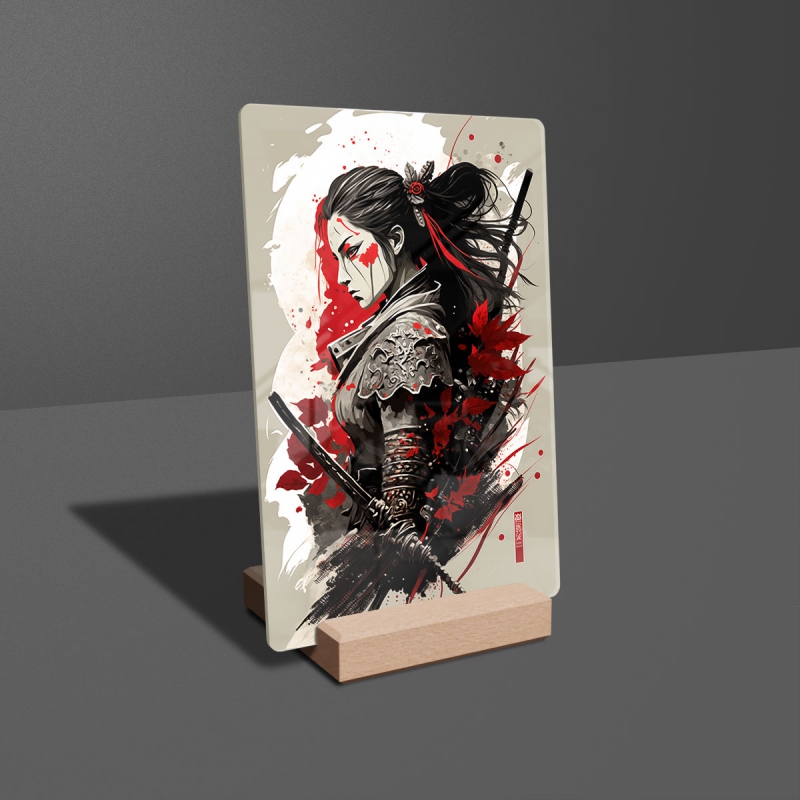 Na produktovém fotu vyobrazena nejoblíbenější varianta akrylového skla 14x21/21x14cm a dřevěný stojánek 10x10cm.
