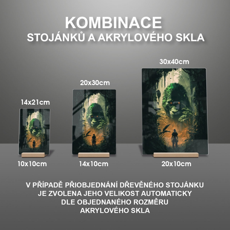 V případě přiobjednání dřevěného stojánku je zvolena jeho velikost automaticky dle objednaného rozměru akrylového skla viz produktové foto.