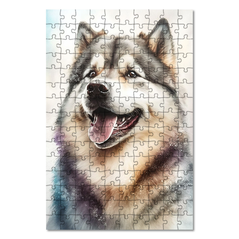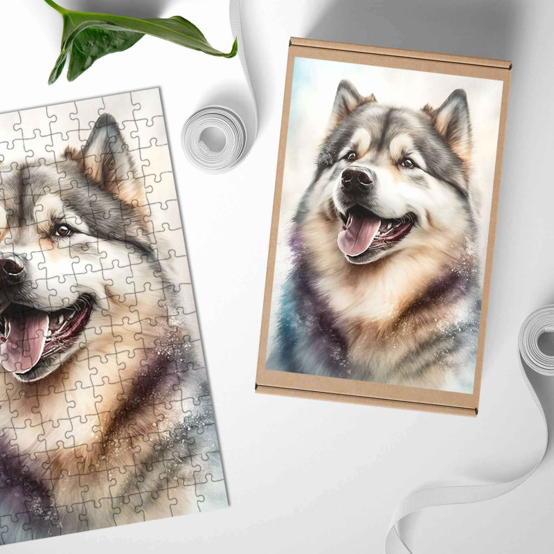 Dřevěné puzzle Aljašský malamut akvarel