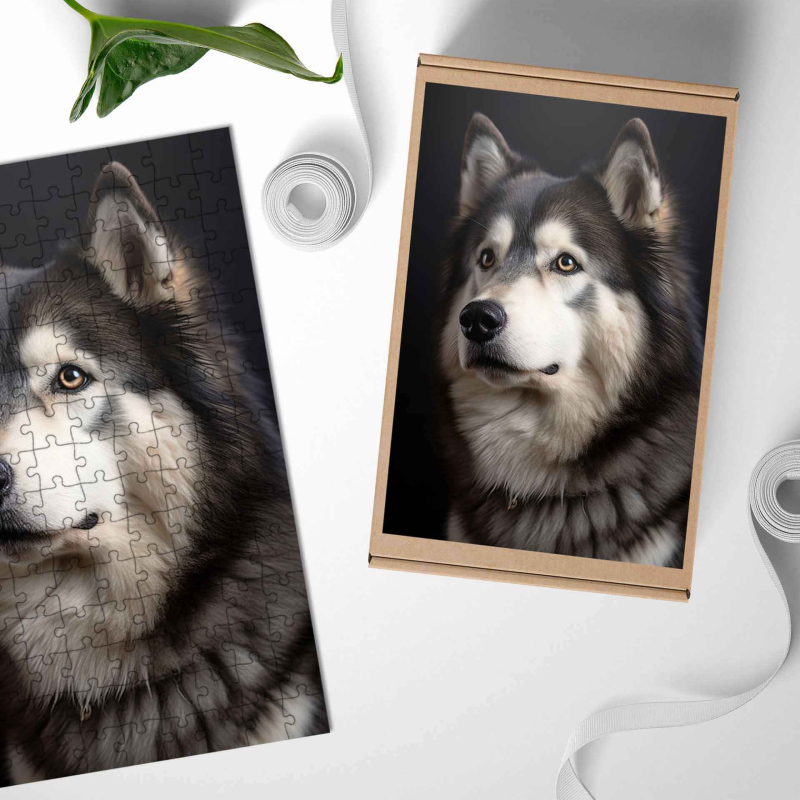Dřevěné puzzle Aljašský malamut realistic