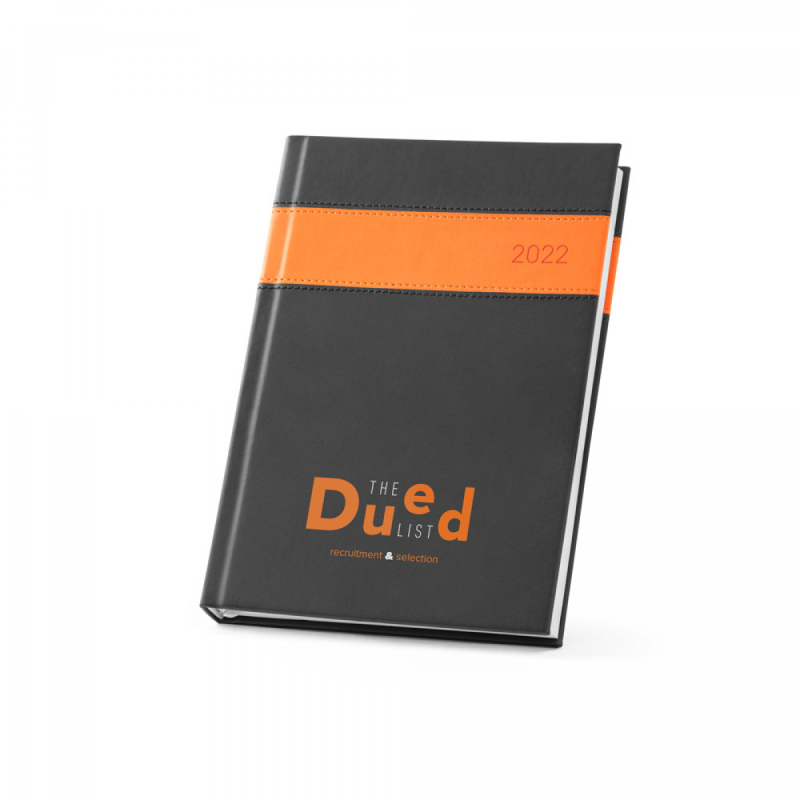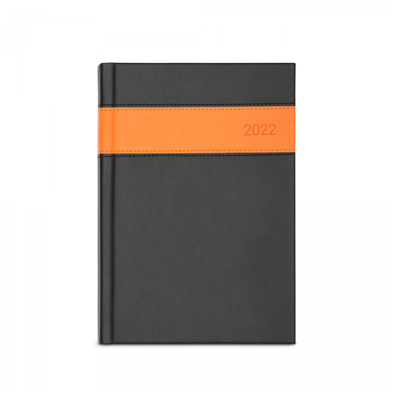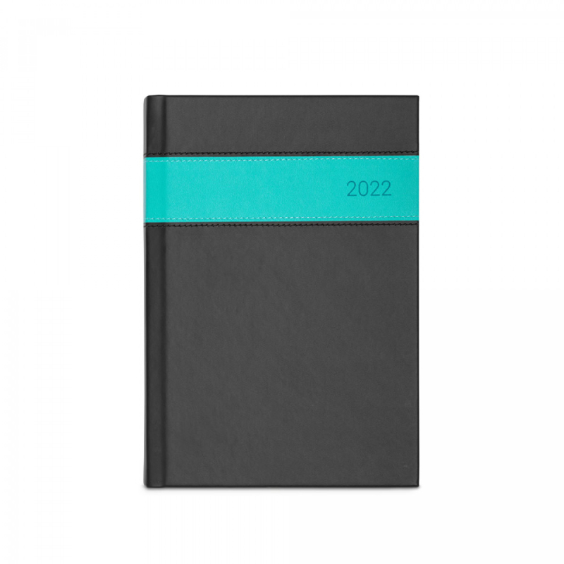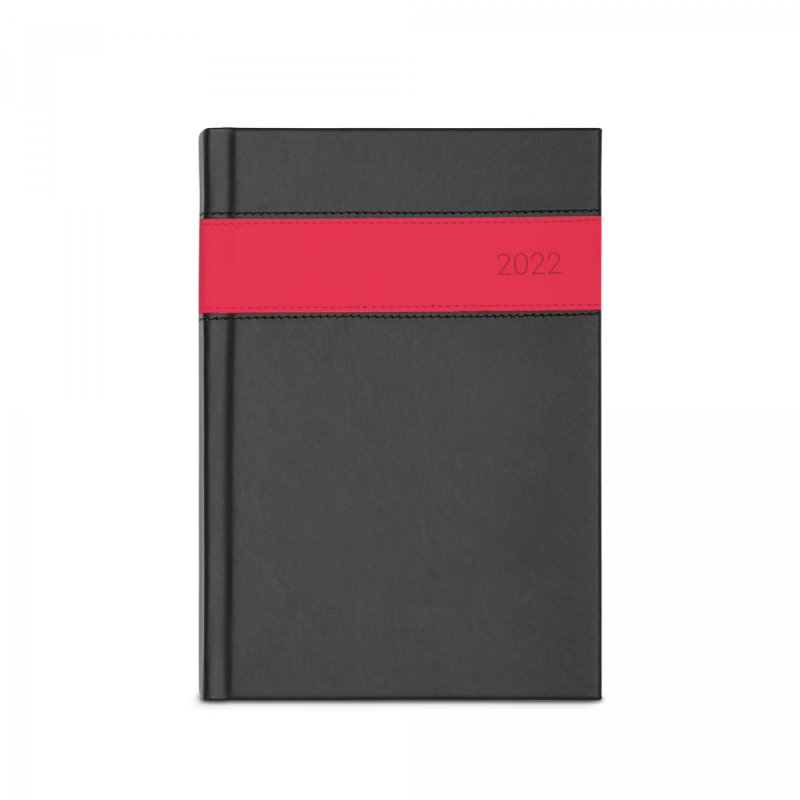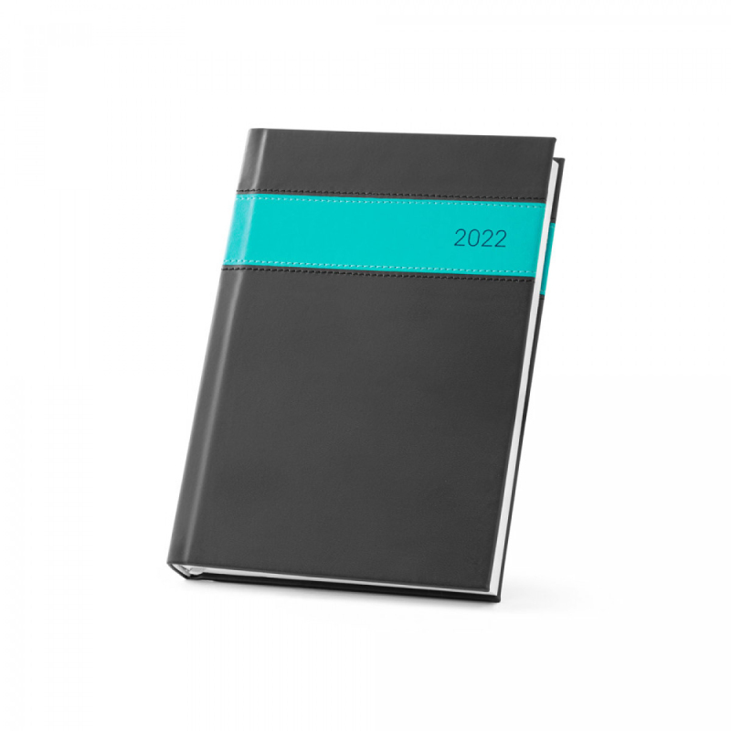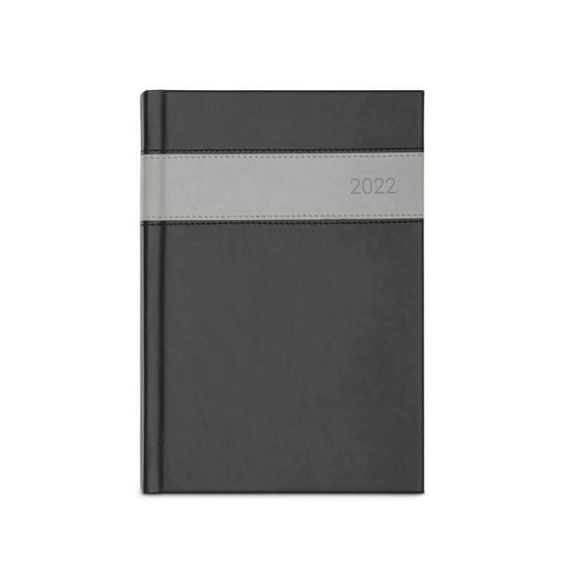 Deník ve formátu A5 z polyuretanu (PU) s označovačem pomocí stuhy. Je organizovaný do denního plánu. 148 x 210 mm