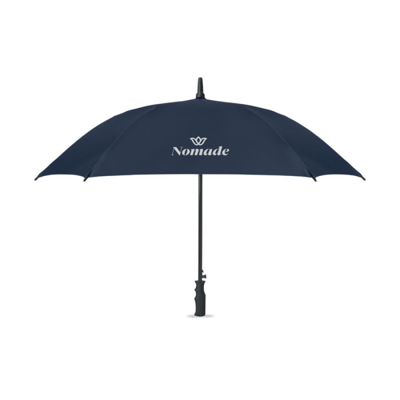 23palcový větruodolný čtvercový deštník s automatickým otevíráním z polyesteru 190T pongee. Tyč a žebra ze sklolaminátu a rukojeť z ABS s gumovou povrchovou úpravou.