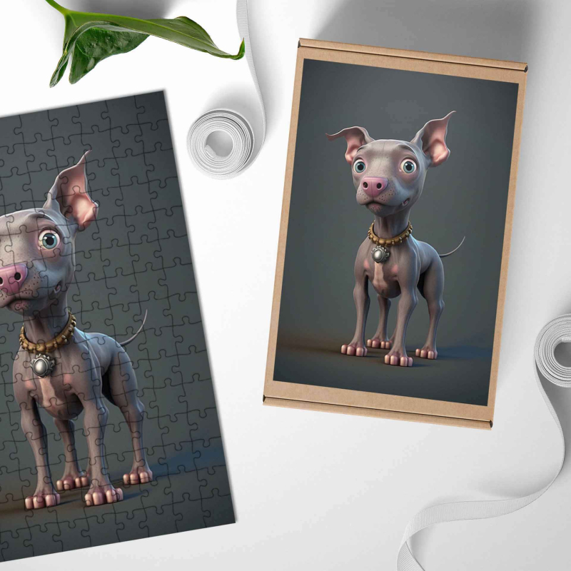 Dřevěné puzzle Americký bezsrstý teriér animovaný