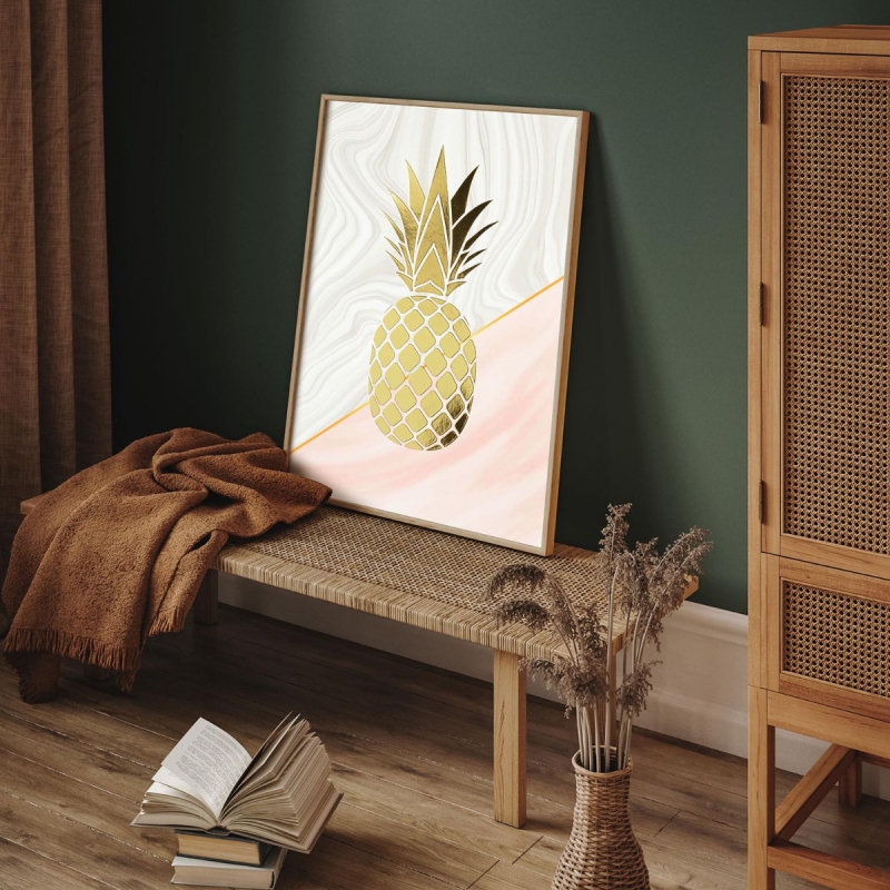 Ananas s Listy 3D Zlatý Plakát