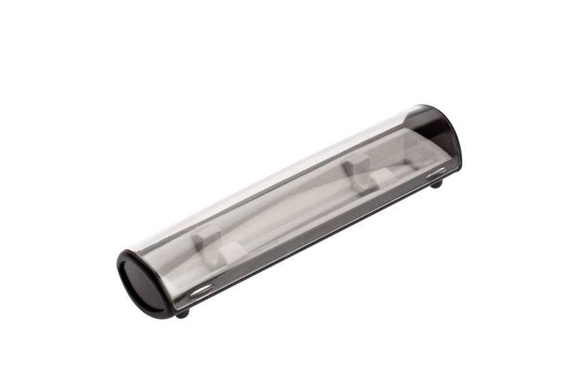 Dárkový box na 1 tužku. Spodní část plastová se semišovou výstelkou, vrchní je z průhledného plastu.
