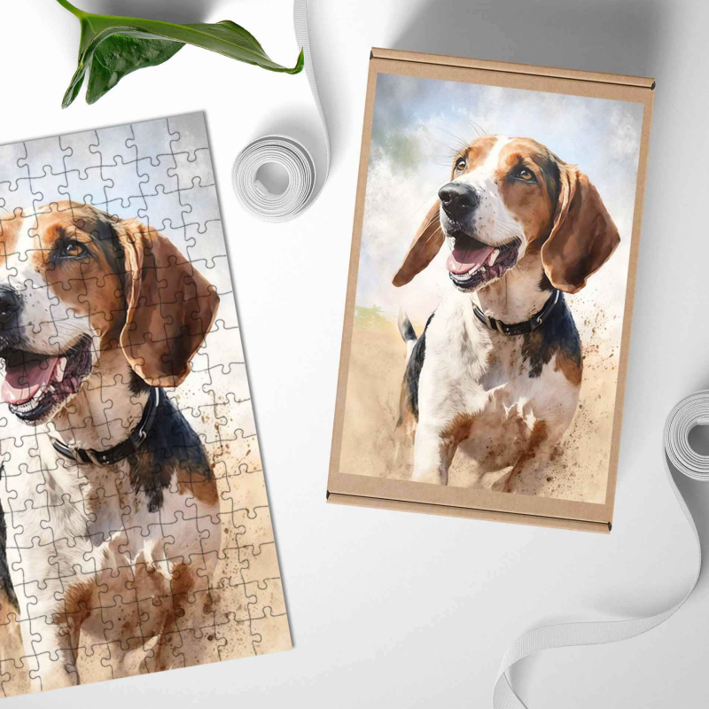 Dřevěné puzzle Anglický Foxhound akvarel