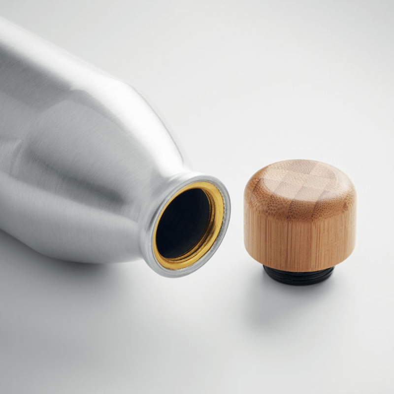 Jednostěnná hliníková láhev s bambusovým víčkem. Objem: 550 ml.