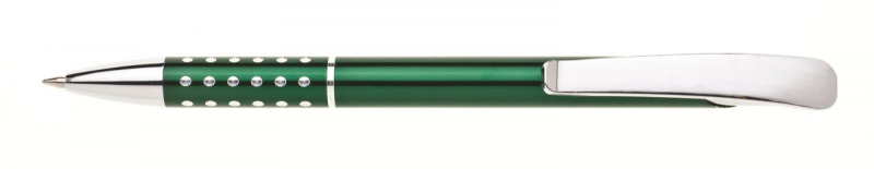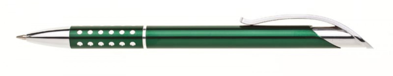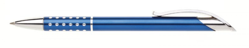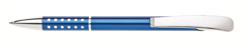 Kuličkové pero AULA vyrobená z hliníku ve vysokém lesku v barvě červené se širokým chromovým klipem, v úchopu zajímavě řešené děrování, kde vystupují chromové tečky. Náplň velkoobsahová-modře píšící.