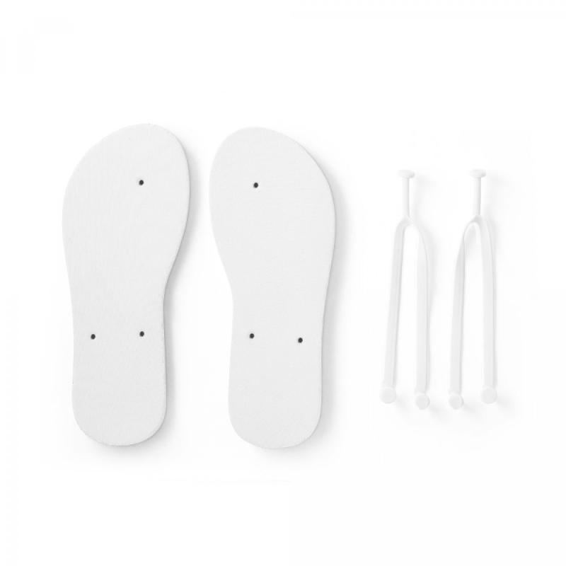 Pohodlné pantofle s podrážkou z EVA a pásky z PVC. Podrážka je plně přizpůsobitelná pomocí sublimace. Dostupné velikosti: L/XL (40 až 43). Dodáváno v sáčku. Tento produkt lze objednat pouze s potiskem. L/XL