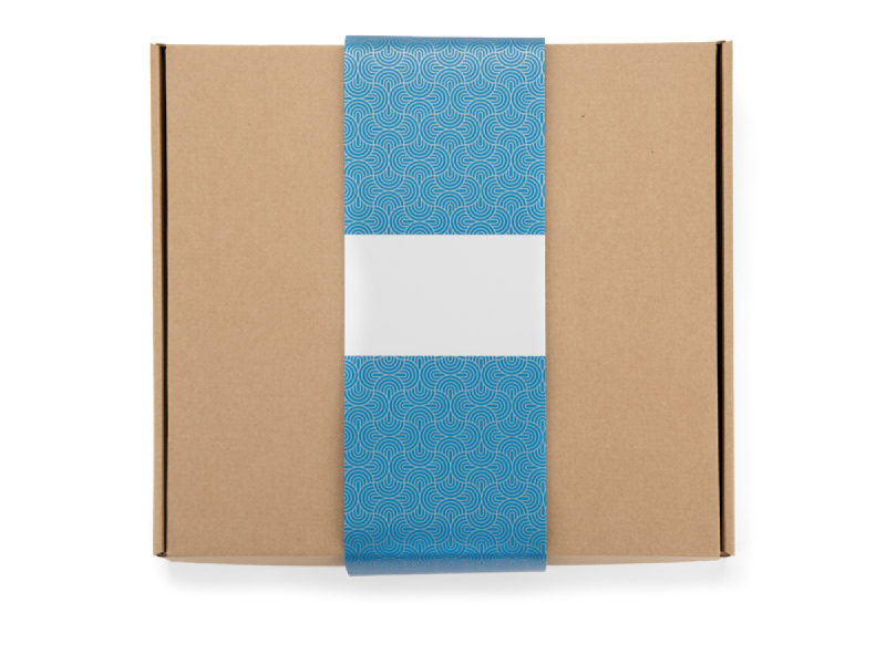 Dárkový balicí set AZUL „S“ je hotovým a stylovým řešením pro firemní dárky. Obsahuje pevnou krabičku z kraftové lepenky, béžovou papírovou výplň (s atestem pro styk s potravinami) a modrý obal se stříbrným autorským motivem vytvořeným speciálně pro BLUE COLLECTION. Obal zajišťuje elegantní zakončení a díky samolepicímu proužku se snadno používá. Sada je k dispozici ve třech velikostech (S, M, L) – snadno ji přizpůsobíte plánovanému obsahu.