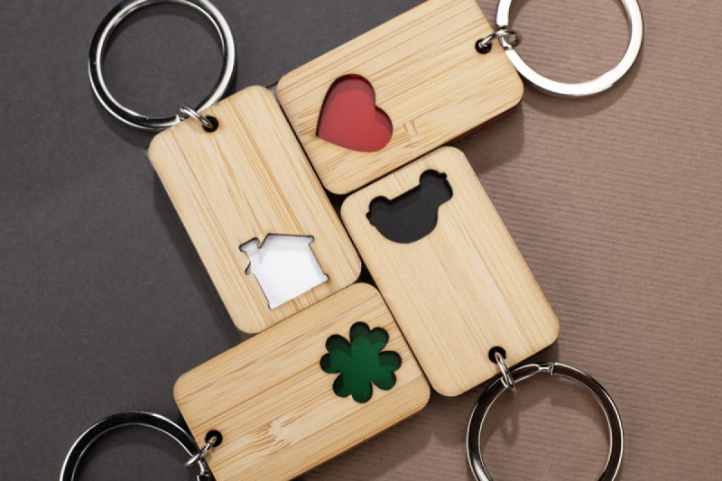 CARVE je bambusová klíčenka s přesně vyřezaným barevným motivem (dům, auto, srdce nebo čtyřlístek) - každá barva odpovídá jinému symbolu. Je estetický a odolný a skvěle se hodí jako reklamní pomůcka s prostorem pro umístění značky.