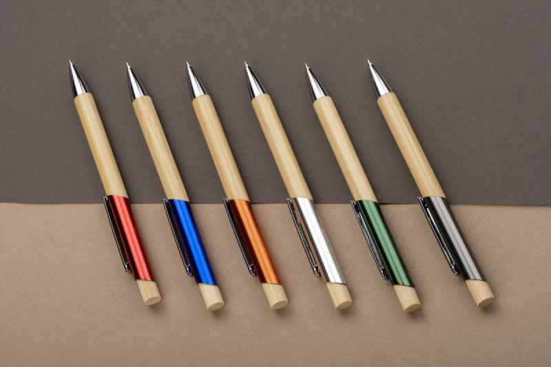 BALIS je jedinečné bambusové pero s výraznými barevnými akcenty s kovovým leskem, které mu dodávají charakter. Klip a stříbrné lemování zvyšují eleganci pera, zatímco mechanismus push-in přispívá k pohodlnému používání. Je vyrobeno z přírodního bambusu a představuje stylovou a ekologickou volbu.