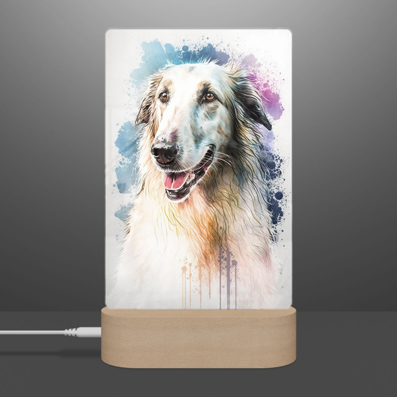 Součástí balení je akrylové sklo dle výběru, dřevěný RGB LED stojánek a napájecí USB kabel.