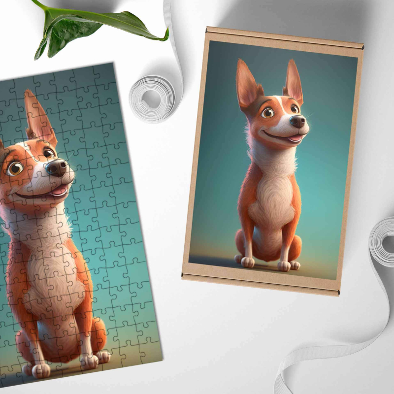 Dřevěné puzzle Basenji animovaný