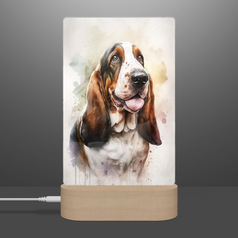 Součástí balení je akrylové sklo dle výběru, dřevěný RGB LED stojánek a napájecí USB kabel.