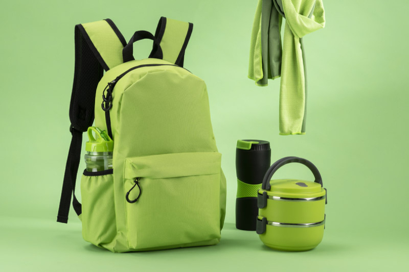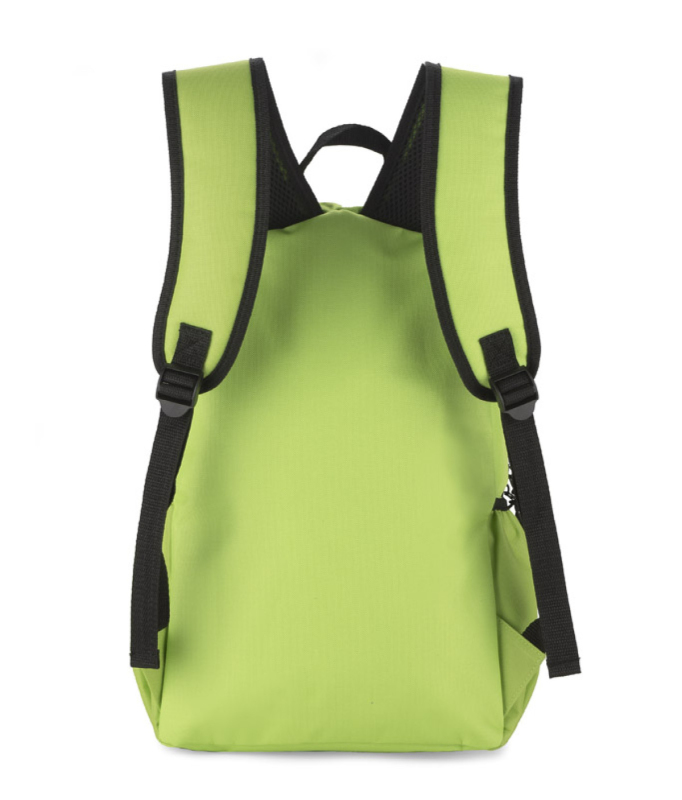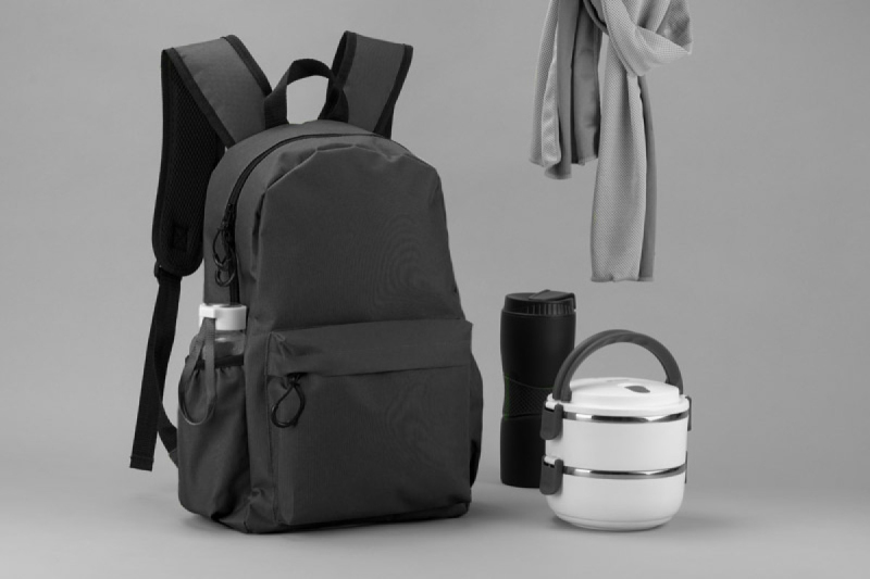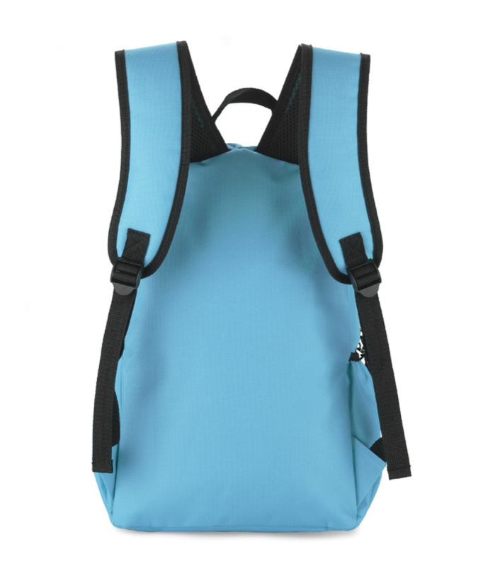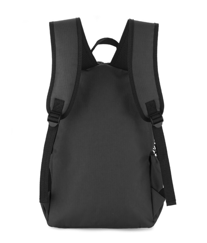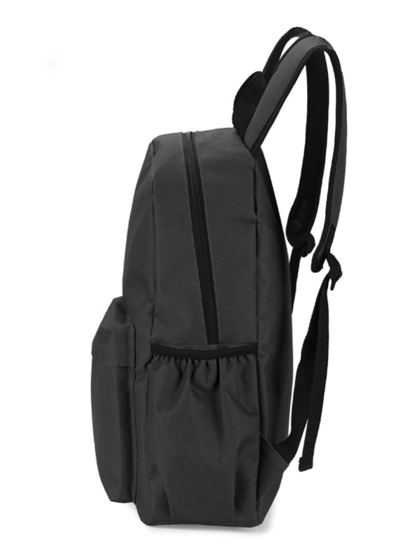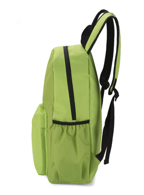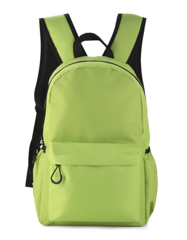 Batoh GINNI je vyroben z polyesteru 600D. Má jednu hlavní přihrádku uzavíratelnou dvěma zipy. V přední části je velká kapsa na zip, do které se vejdou všechny potřebné drobnosti. Na obou stranách jsou otevřené přihrádky s elastickým páskem na láhev s vodou. Dno a zadní část nejsou vyztužené.