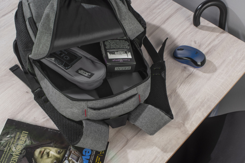 Batoh MARSH vyroben z odolného polyesteru 600D vybaven objemnou hlavní komorou s úzkou přihrádkou uzavíranou řemínkem na suchý zip. Pro přenášení 15palcového notebooku. Ve předu je menší komora uzavírána na klip a velká kapsa uzavírána na zip. Na obou stranách najdete síťované nápojové kapsy. Zpevněná záda a ramenní popruhy s měkkou síťkou zvyšující pohodlí používání. Na hoře pohodlný a široký úchop. Vnitřní černá podšívkovina.