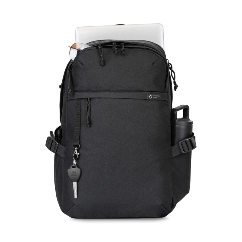 Moderní batoh je vyroben z recyklovaných PET lahví. Obsahuje polstrovanou přihrádku na notebook do 15", prostornou hlavní kapsu s organizérem a horní kapsu na příslušenství. Praktická přední kapsa s klipem na klíče a dvě boční kapsy na láhve. Pohodlné polstrované ramenní popruhy jsou nastavitelné. K dostání v Evropě i Severní Americe.