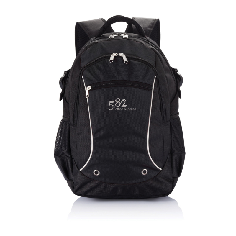 Batoh z materiálu 1680D a žakáru. Přední kapsa na zip s organizérem. Hlavní oddíl na zip s polstrovanou kapsou na 15,6” notebook. Reflexní paspulky. Dvě boční síťované kapsy. Bez PVC.