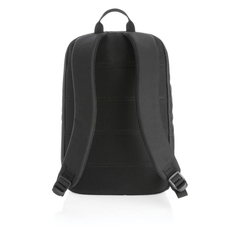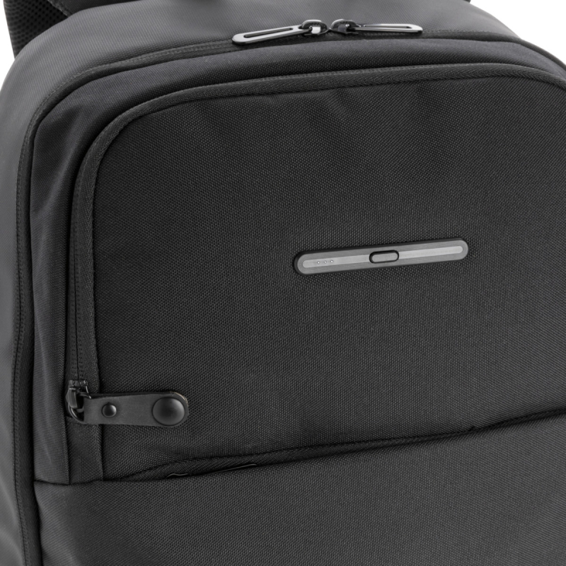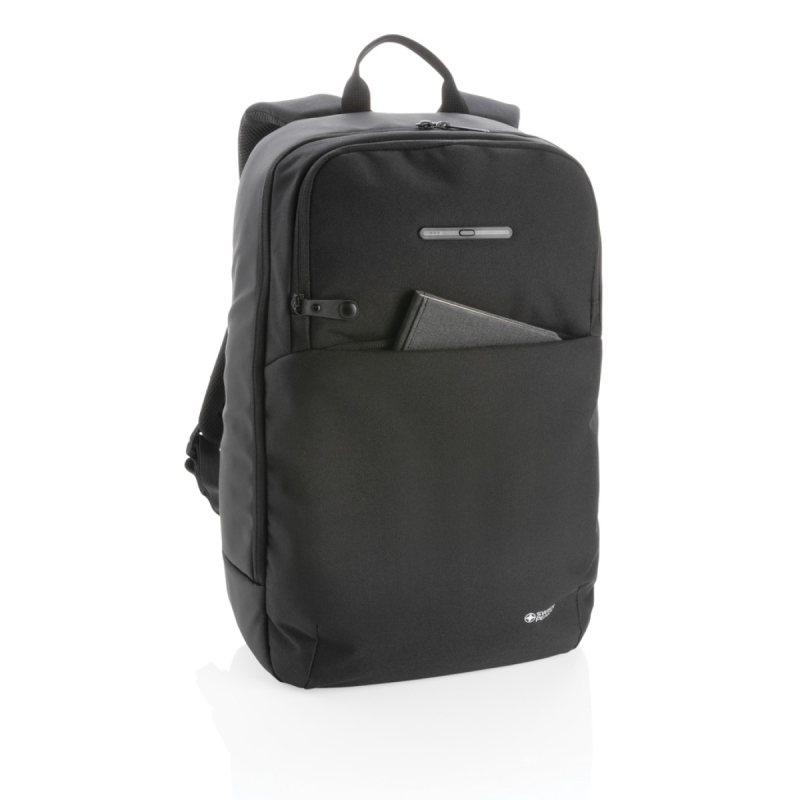Unikátní batoh na 15,6" notebook v minimalistickém provedení. Speciální kapsa s integrovanou UV-C sterilizací, která ničí až 99,9 % bakterií na vloženém předmětu již za 3min. Ideální pro čištění klíčů nebo telefonu za pochodu. 3 UV-C světla jsou netoxická bez obsahu rtuti, po rozepnutí zipu kapsy se automaticky vypínají pro zabránění osvětlení uživatele. Hlavní oddíl s přihrádkou až na 15,6" notebook, 2 otevřenými kapsami a 2 očkama na pera. Polstrovaná síťová zadní část a popruhy pro maximální pohodlí. Vnější část z 600D a 900D PU polyesteru. Vnitřní z 210D polyesteru. Bez PVC. Včetně micro USB kabelu pro napájení UV-C sterilizační kapsy skrze vlastní powerbanku. V souladu s EN62471.