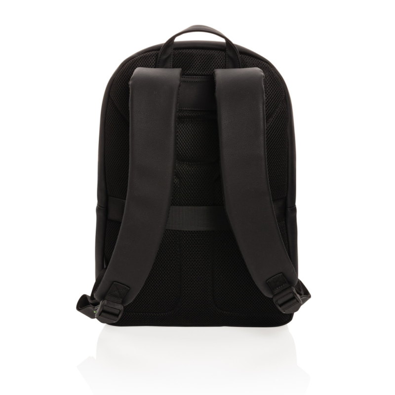 Prémiový batoh na 15,6" notebook vyrobený z hladké PU kůže v elegantním provedení. Svrchní zapínání na zip, ucha na nošení v rukou, přizpůsobitelné ramenní popruhy, vnější kapsa na zip, zadní popruh na madlo kufru, vnitřní oddíl až na 15,6" notebook, dodatečná vnitřní kapsa na zip. Vnější část z PU, vnitřní z 210D polyesteru. Bez PVC.