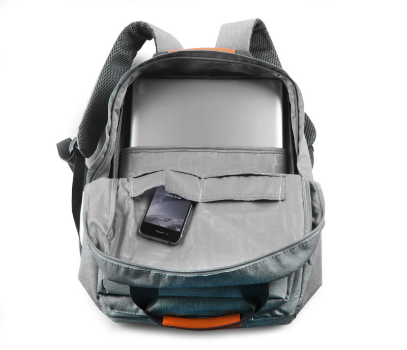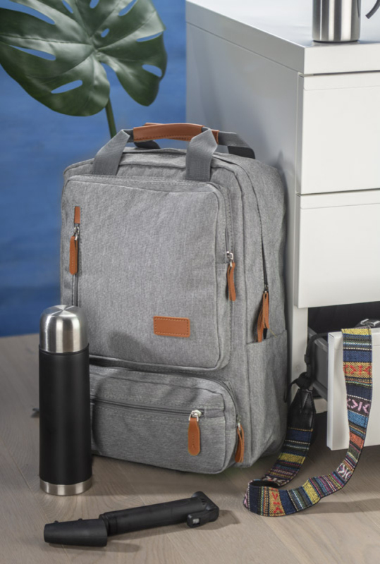 PAKKU jednokomorowy plecak jest doskonałym wyborem zarówno dla kobiet, jak i mężczyzn. Szary kolor czyni go uniwersalnym, a jasnobrązowe elementy wykonane z eko-skóry stanowią interesujący kontrast. PAKKU jest bardzo pojemny, z pięcioma wewnętrznymi i sześcioma zewnętrznymi kieszeniami - cztery zapinane na zamek błyskawiczny i dwie boczne. Ponadto ma dwa uchwyty wzmocnione eko-skór