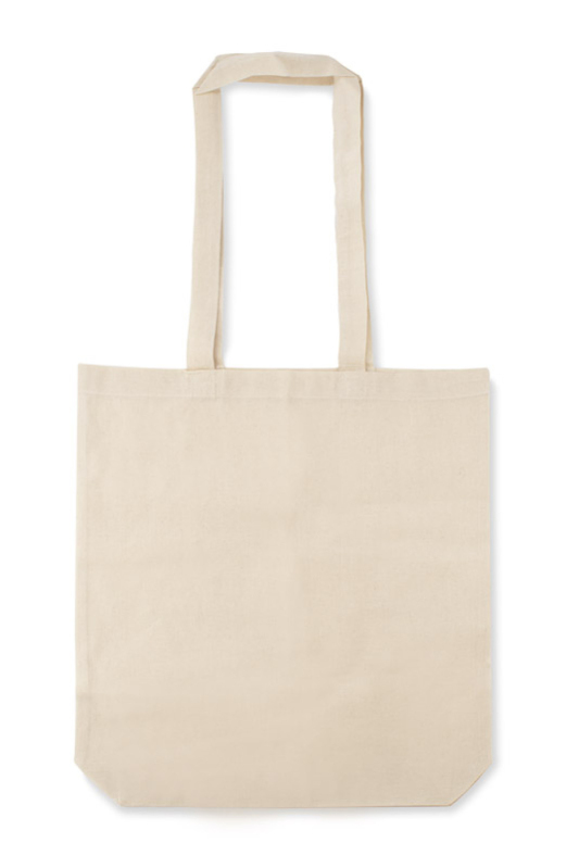 Ekologická taška z přírodní bavlny (140 g/m2) s dlouhými uchy. Taška má rozšířené boky a dno, díky čemuž je velmi prostorná. Dodatečné prošití zajišťuje větší odolnost tašky.