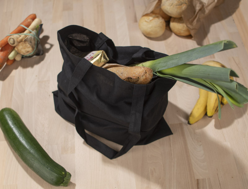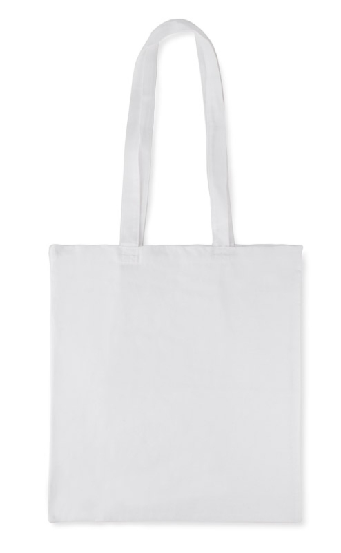 Ekologická taška z přírodní bavlny (140 g/m2) s dlouhými uchy. Dodatečné prošití u držadel zajišťuje větší odolnost tašky.