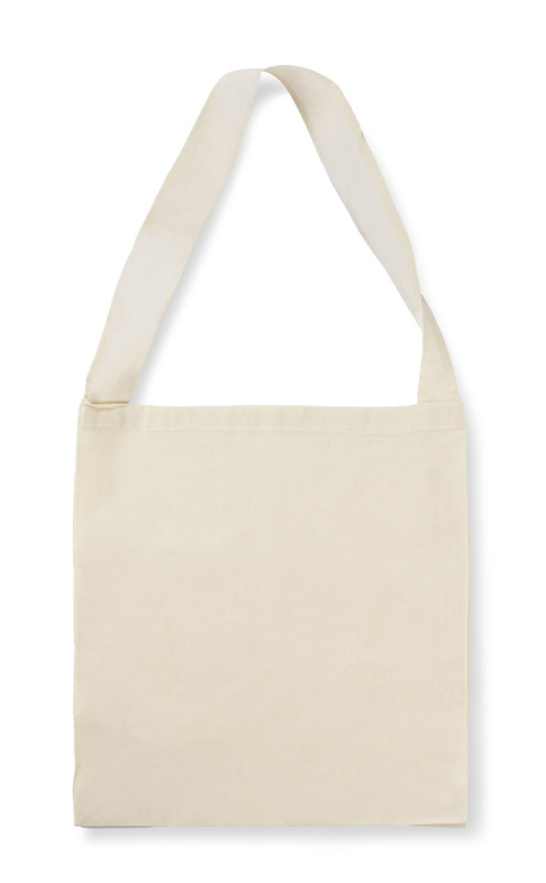 Ekologická taška z přírodní bavlny (180 g/m2) s jedním dlouhým popruhem pro zavěšení na rameno. Taška má rozšířené boky a dno, díky čemuž je velmi prostorná. Dodatečné prošití zajišťuje větší odolnost tašky.