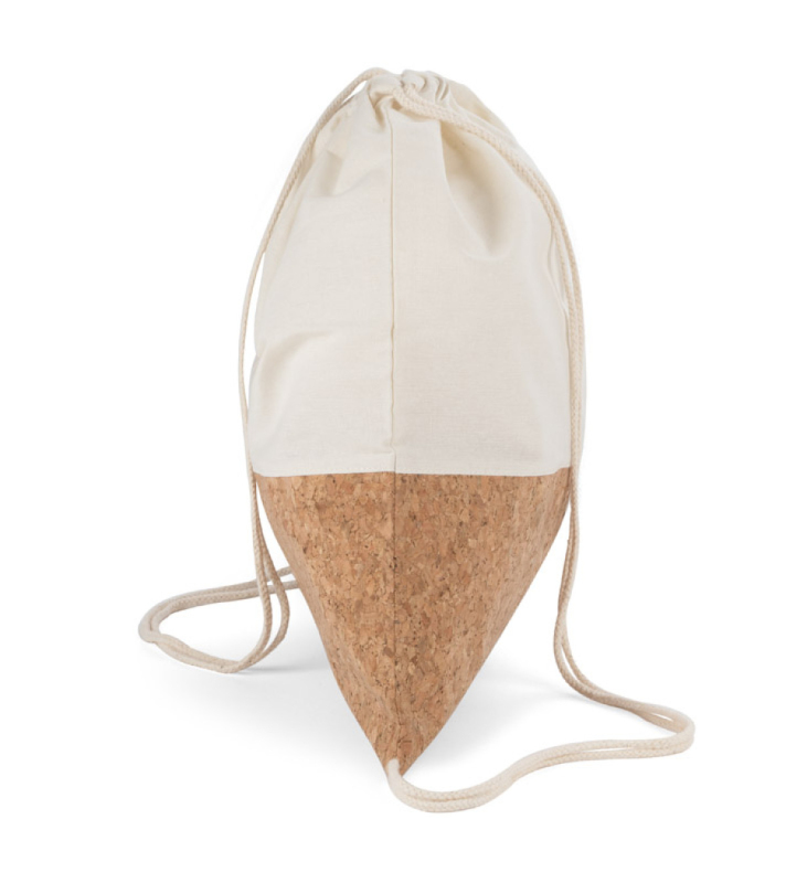 Batoh pytlík KORIK je batohem s objemnou hlavní kapsou. Pohodlně se zatahuje za provázky, vyroben z bavlny a korku. Nenahraditelný na nákupech.