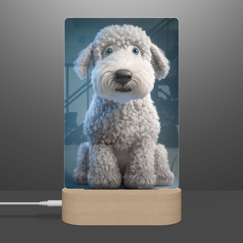 Součástí balení je akrylové sklo dle výběru, dřevěný RGB LED stojánek a napájecí USB kabel.