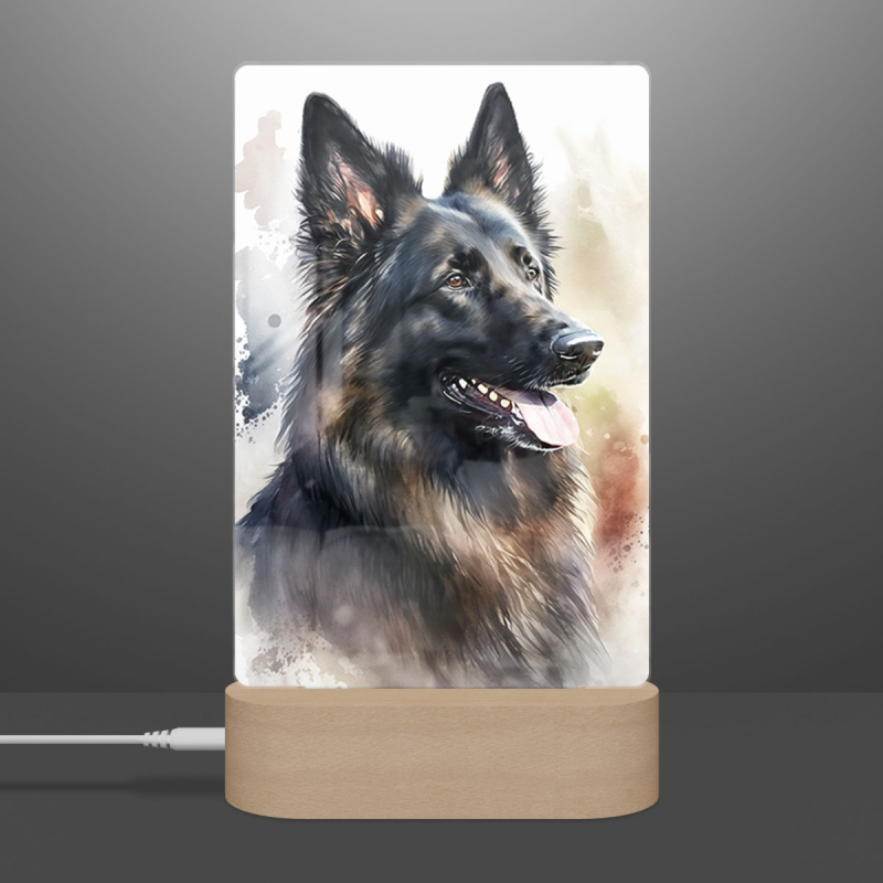 Součástí balení je akrylové sklo dle výběru, dřevěný RGB LED stojánek a napájecí USB kabel.