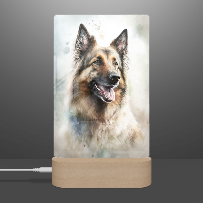 Součástí balení je akrylové sklo dle výběru, dřevěný RGB LED stojánek a napájecí USB kabel.