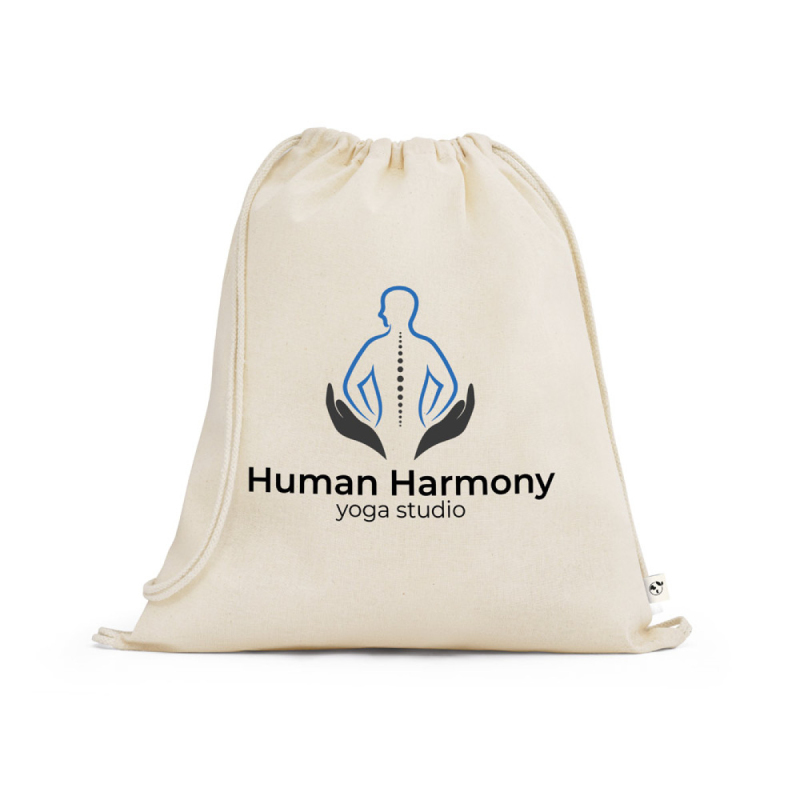 Taška na batoh ze 100% organické bavlny (140 g/m²), s bavlněnými uchy na uzavření. 370 x 410 mm