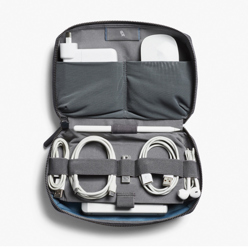 Taška pro uchování veškerého vašeho technologického příslušenství v organizované a přehledné podobě. Navrženo i pro větší rozměry příslušenství. Široké otevírání na zip pro snadný přístup. Magnetická kapsa vyhrazená na powerbanku. Síťové kapsy na drobné předměty. Vnitřní stěna s elastickým organizérem na nabíjecí kabely.