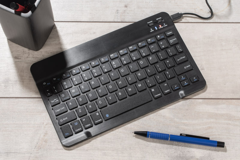 Bezdrátová klávesnice KEYGO je kompaktní klávesnice o velikosti standardního tabletu, takže se snadno přenáší a je ideální pro práci na cestách. Mimořádně praktickou vlastností této klávesnice je její dlouhá provozní doba na jedno nabití, můžete ji používat až 36 hodin. Klávesnice funguje se systémy iOS, Android a Windows. Připojení Bluetooth 3.0 vám umožní připojit se k zařízením, jako jsou chytré telefony, tablety a notebooky.