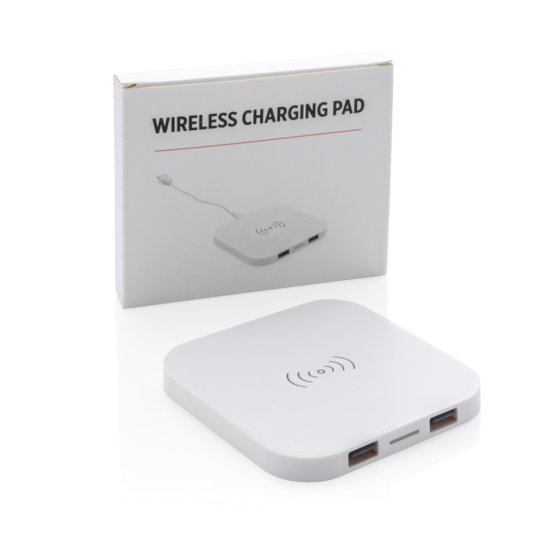 Bezdrátová nabíječka s výkonem 5W vhodná pro nabíjení telefonů podporujících QI jako jsou nejnovější generace Android, iPhone 8 a výše. Díky 2 USB výstupům je možné nabíjet i jakákoliv jiná zařízení nepodporujících QI. Vyrobeno z ABS. Vhodná pouze pro nabíjení, nikoli pro datový přenos. Vstup: 5V/1A. Výstup USB: 5V/1A. Bezdrátový výstup: 5V/1A 5W.