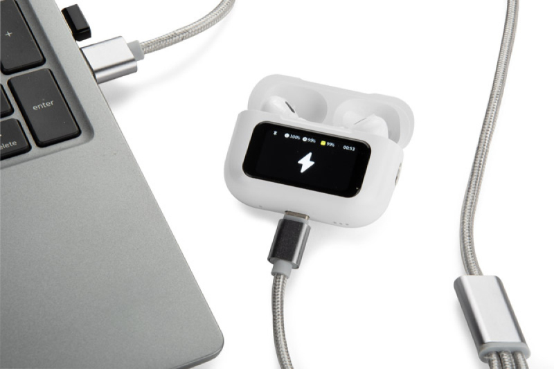 Bezdrátová sluchátka SENSIFY s moderním prémiovým gadgetem, který kombinuje funkčnost sluchátek do uší s pokročilým pouzdrem vybaveným barevným dotykovým displejem. Umožňuje ovládat hlasitost, aktivovat potlačení šumu (ANC/ENC), přepnout do režimu okolního zvuku (ambient) a zobrazit úroveň nabití. Sluchátka poskytují až 4 hodiny provozu a pouzdro s kapacitou 300 mAh umožňuje vícenásobné nabíjení. Zařízení se připojuje k chytrému telefonu přes Bluetooth a podporuje dotykové ovládání. Výrobek je zabalen v estetické, minimalistické krabičce prémiového stylu. Nabíjení probíhá přes USB-C (kabel není součástí balení).