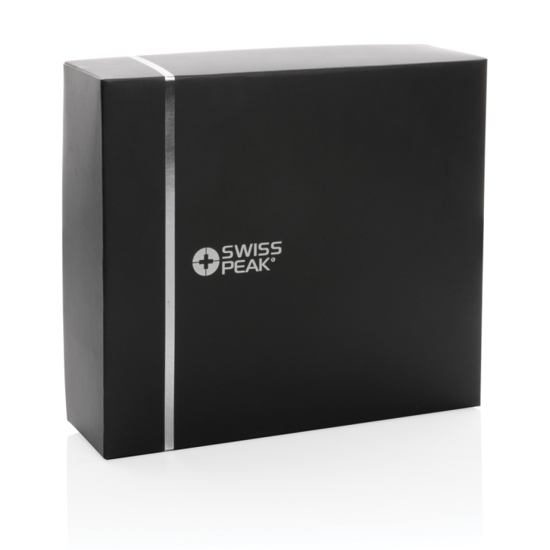 Vysoce kvalitní bezdrátová stereo sluchátka pro perfektní zvukový zážitek. Baterie s kapacitou 300 mAh umožňuje poslech po dlouhou dobu až 11h na jedno nabití (1,5h). BT 5.0 zajišťuje snadné a stabilní bezdrátové připojení na vzdálenost až 10m. Mikrofon pro přijem hovorů. Skládací provedení a cestovní pouzdro Swiss Peak pro snadný přenos. Sluchátka z hliníku, náušníky z měkkého pohodlného PU.